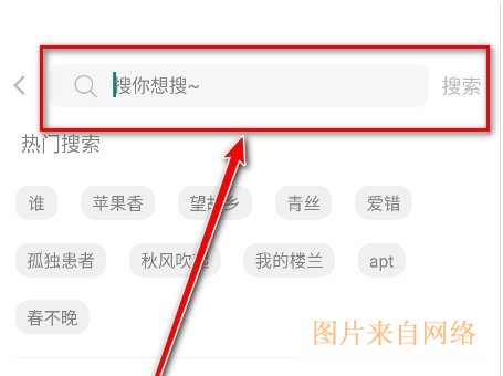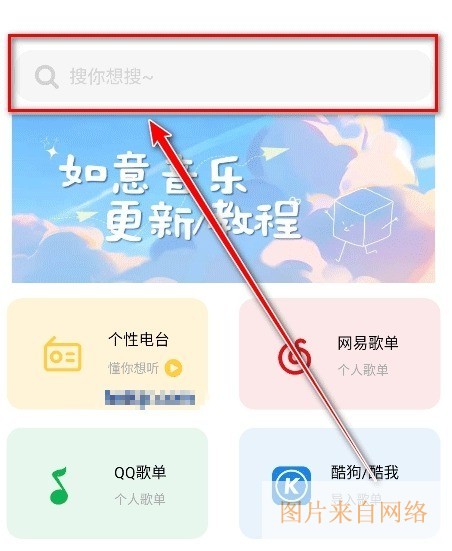 1、在首页顶部找到并点击【搜索框】,准备进行歌曲查找。