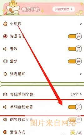 最后,如图所示,设置成关闭状态即可关闭单词自动发音了。