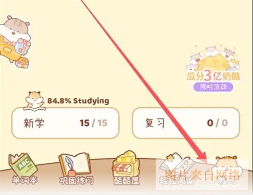 打开奶酪单词app,点击app主页右下角的“我的”。