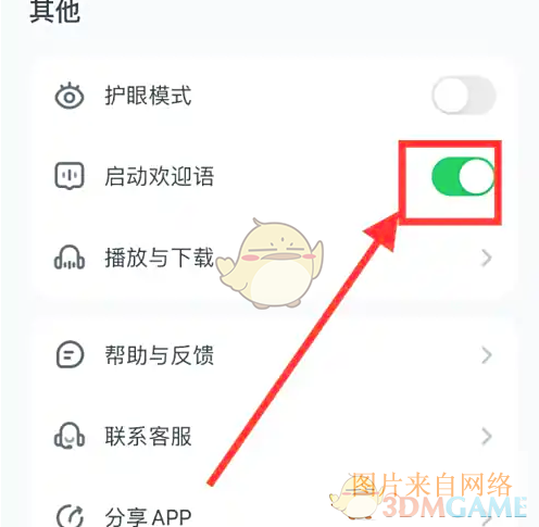 2、进入选择界面,点击‘启动欢迎语’可关闭。